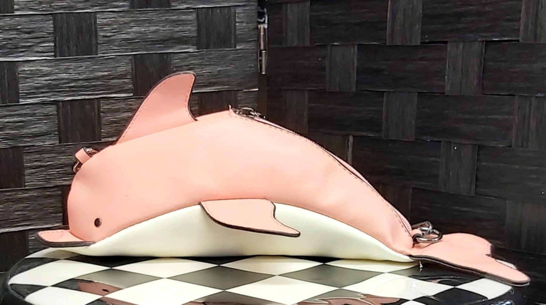 Dolphin shaped purse with a detachable and adjustable shoulder strap. Can be used as a crossbody.